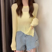 レディース UV対策 透かしニットセーター お洒落 不規則な裾トップス プルオーバー 日焼け防止 カットソー カジュアル