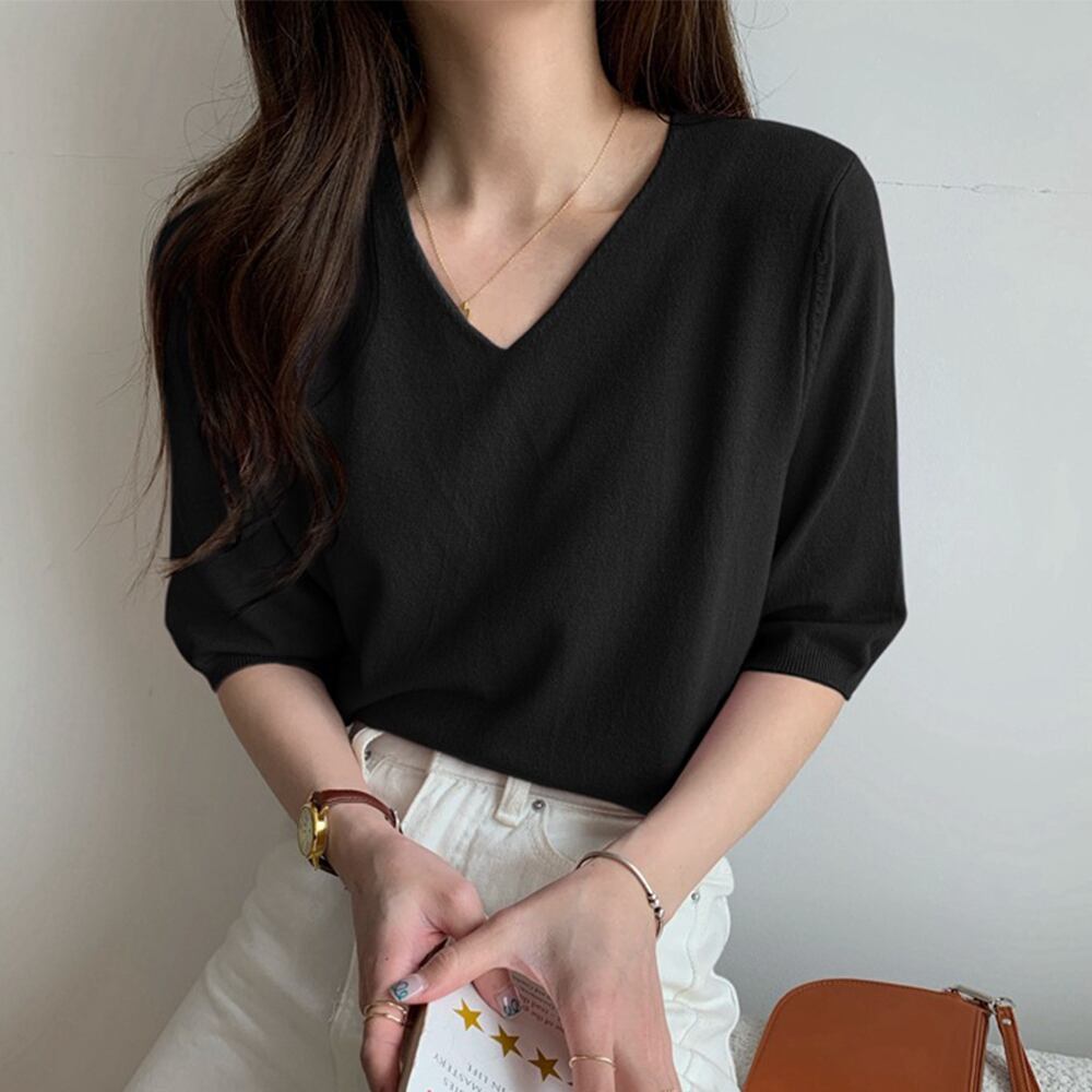 五分袖で、薄型なので、春夏秋の季節にには欠かせないニットトップス