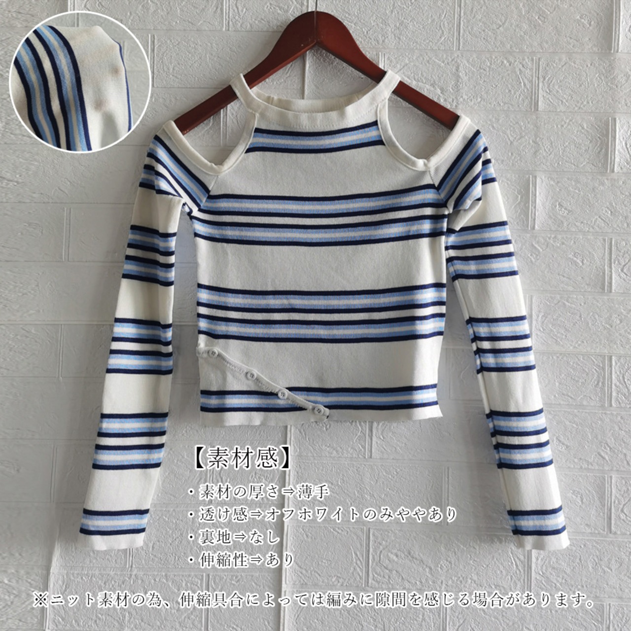 肩開き ボーダー柄ニットトップス 韓国風