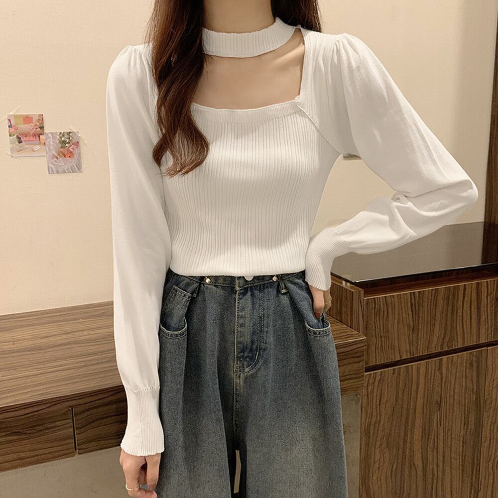レディース バストオープン ニットトップス カジュアル パフスリーブ ニットソー 20代 30代 ニットウエア おしゃれ