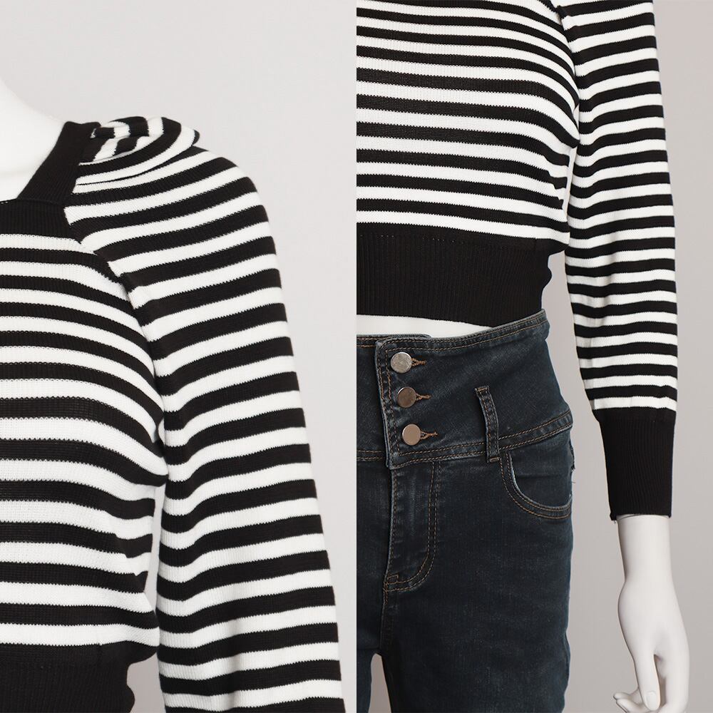 スクエアネック ショート丈 ニットセーター 韓国ファッション ウエア 無地 ボーダー柄 きれいめ カジュアル 春秋冬