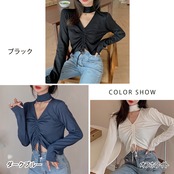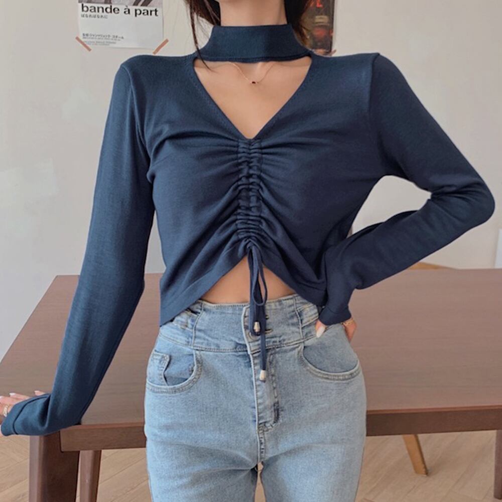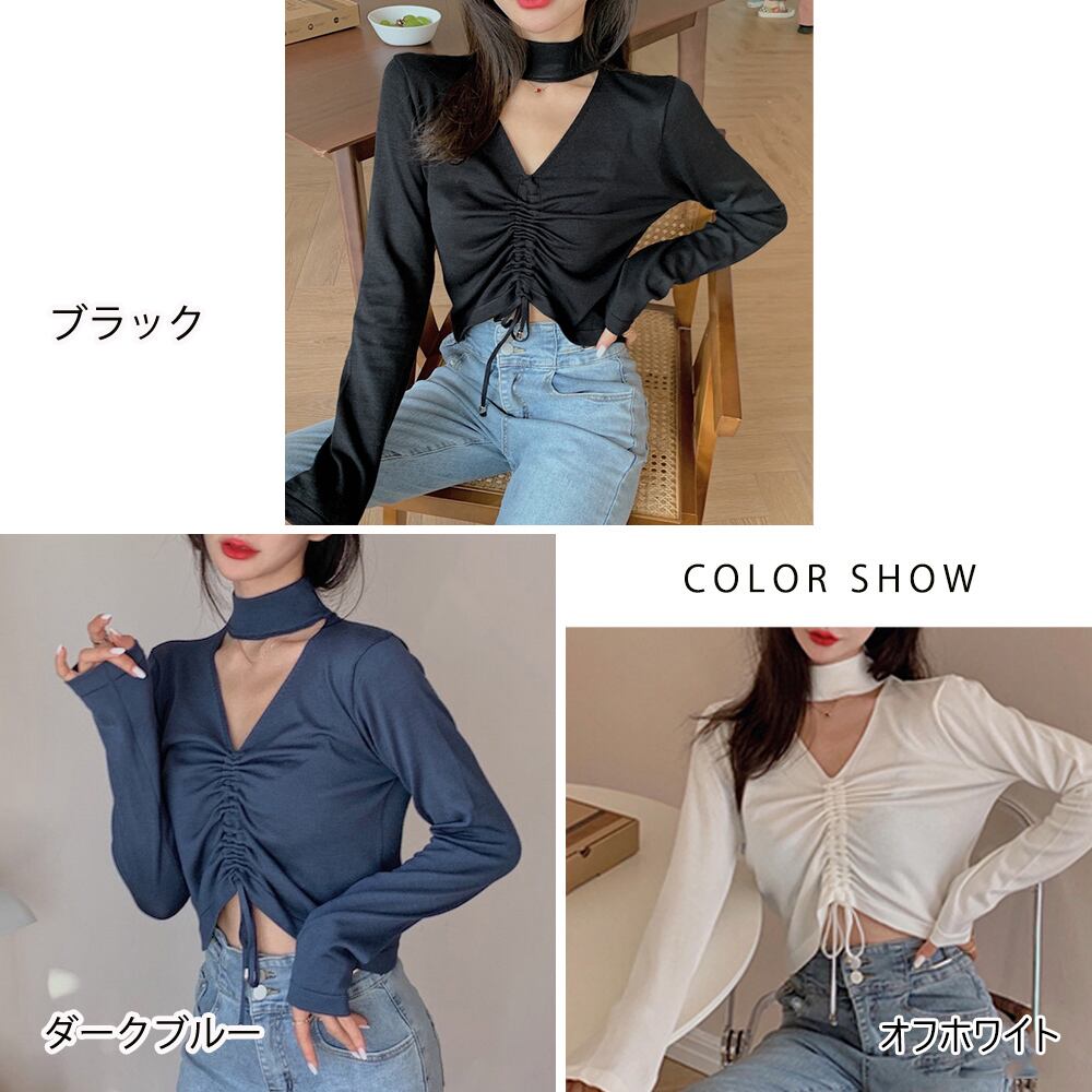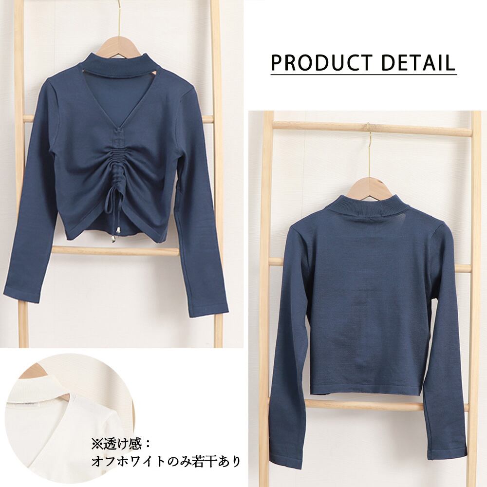ニットソーへそ出し ドローストリング デコルテ見せ春秋冬