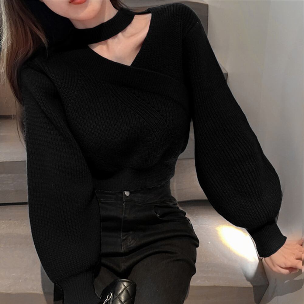 ニットセーター無地 黒プルオーバー大人 おしゃれオルチャン
