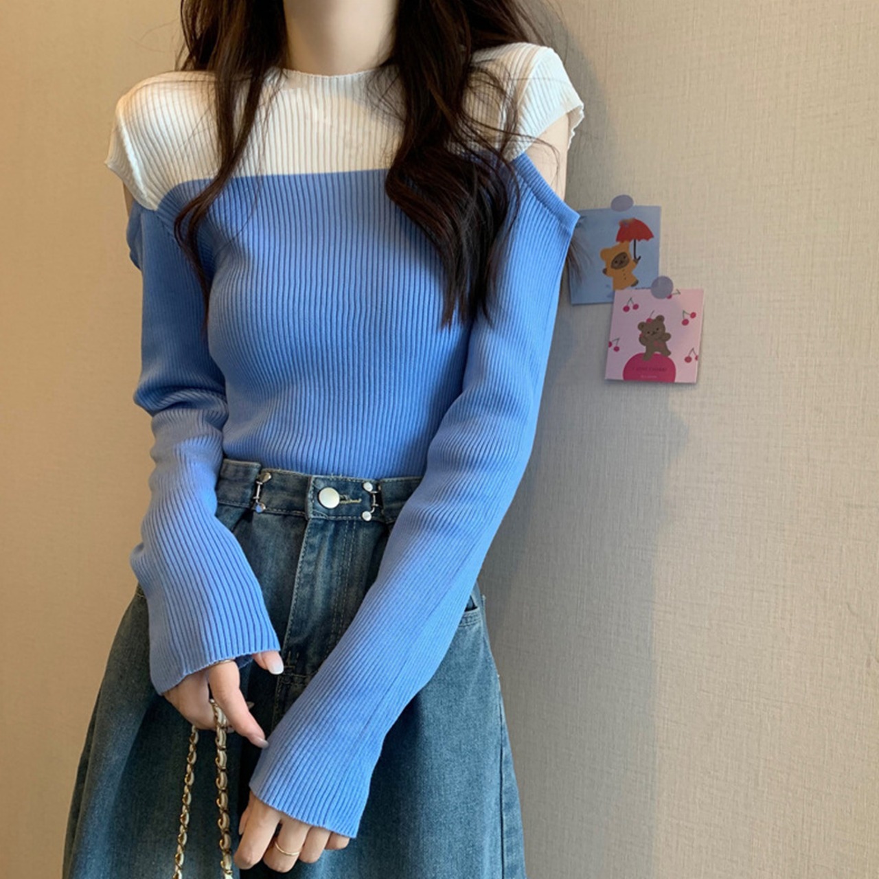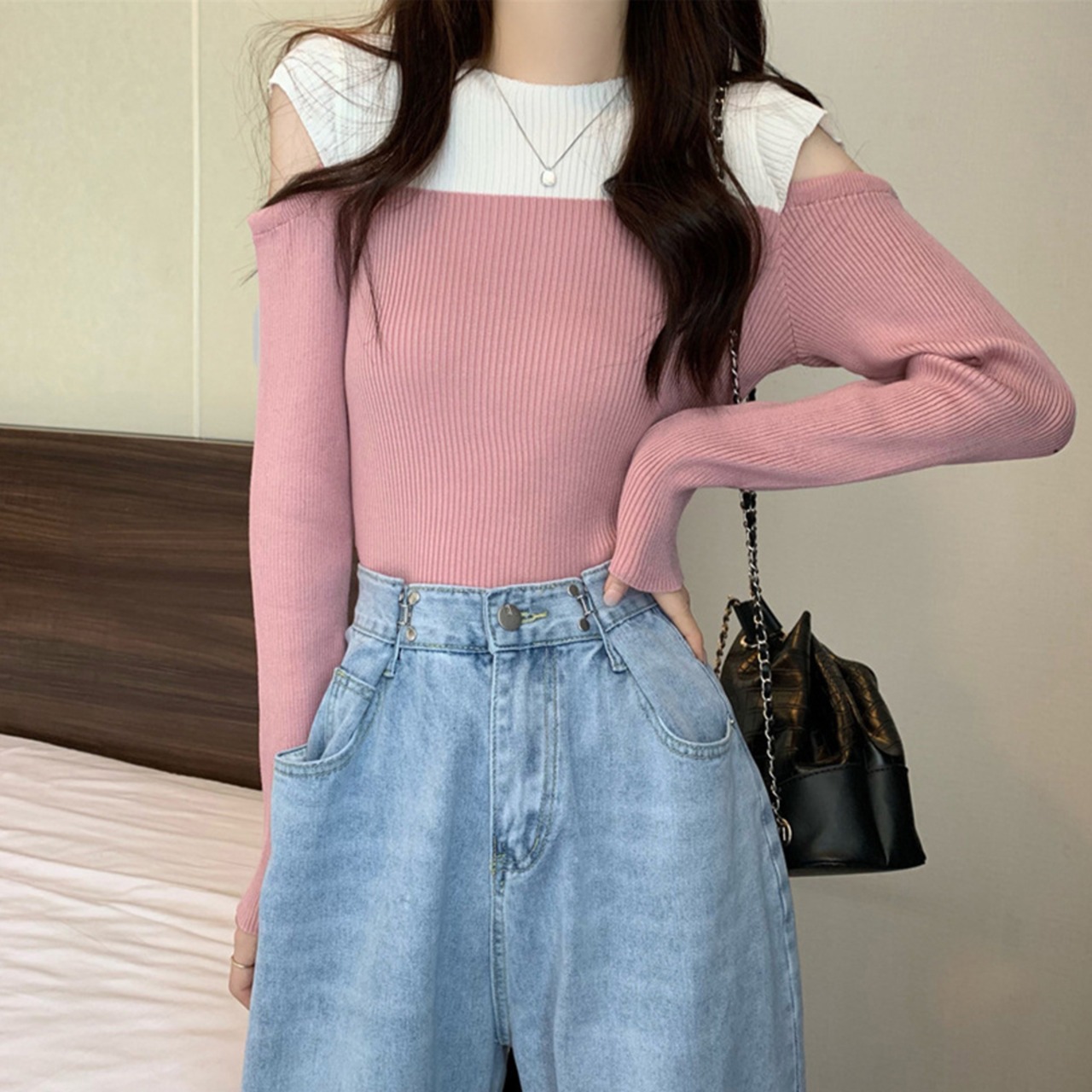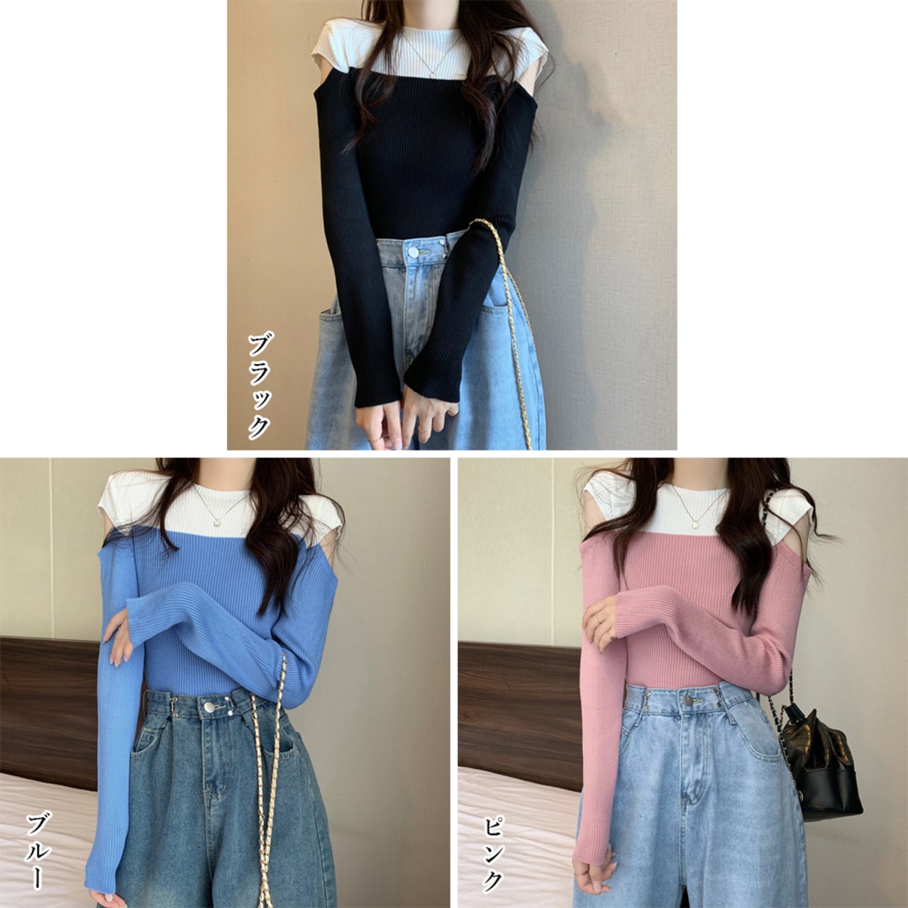 レディース タイトニット 肌見せ セクシー リブニット カジュアル オフショルダーニット 着やせ オープンカットトップス