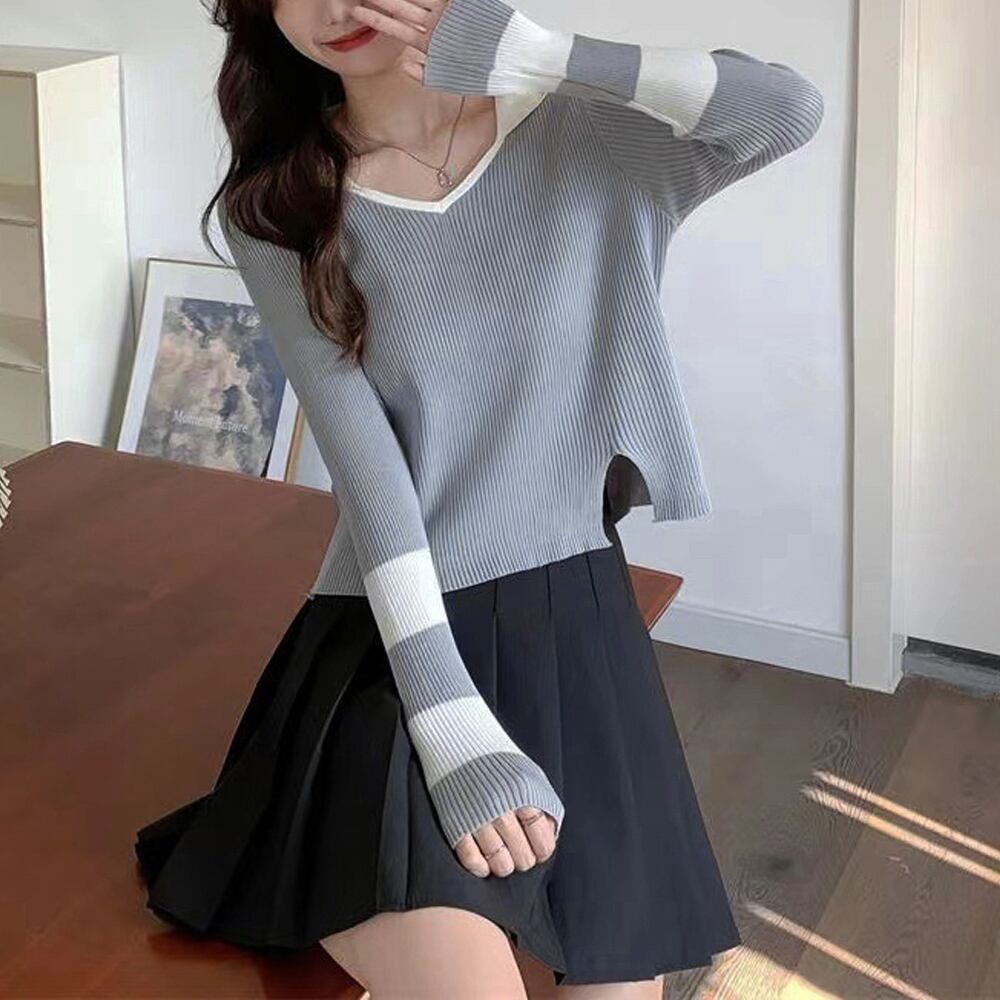 ニットトップス Vネック スリット入り