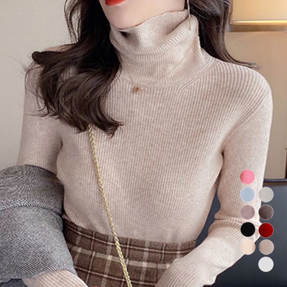 秋冬のワードローブに欠かせないハイネック長袖ニットトップス