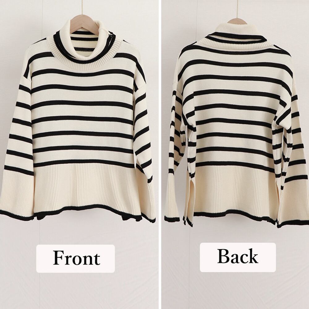 ハイネック ニット ドロップショルダー 長袖韓国風トップス