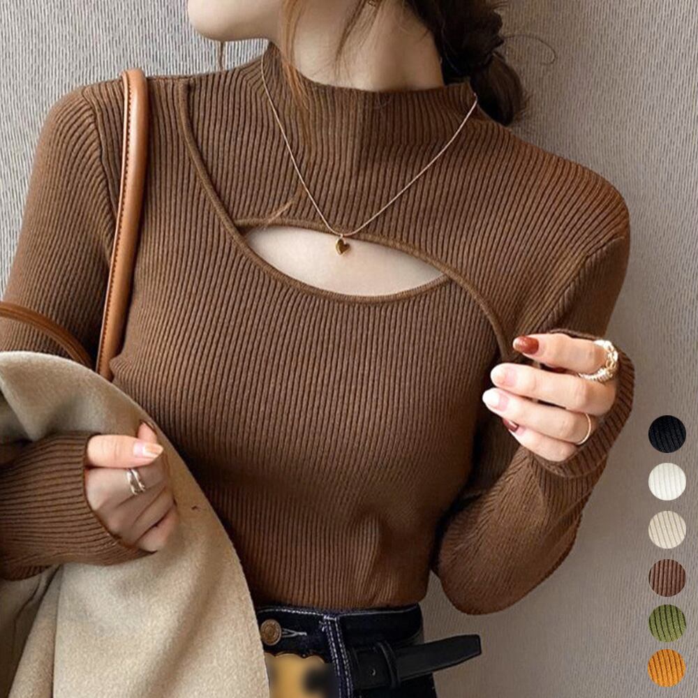 ニットインナー通勤 韓国風トップス大人 きれいめニット秋冬