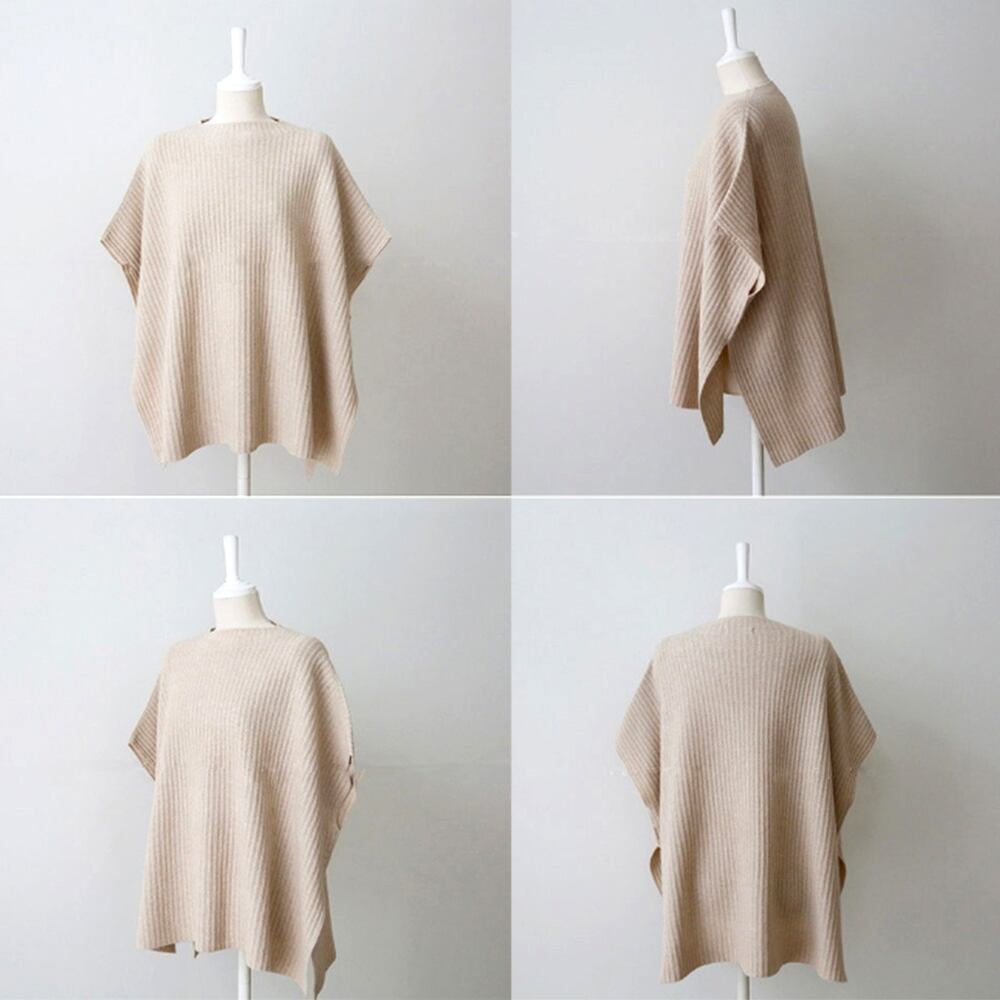 韓国 フレンチスリーブニット スリット リブニットポンチョ 重ね着 大人カジュアル ニットセーター プチハイネックベスト
