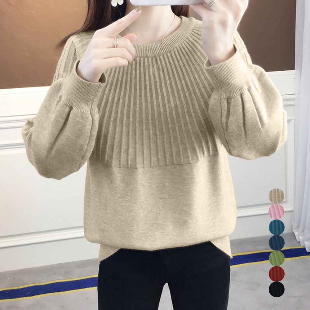 体型カバートップス シンプル長袖ニット お洒落ニットソー