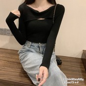 タイトトップス春秋 着回しニット重ね着 女性ニットソー無地