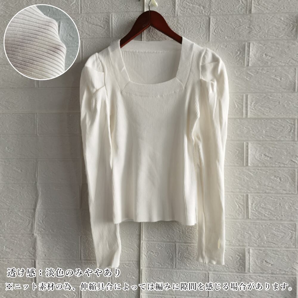 スクエアネック ニットウェア レディース カジュアル ニットプルオーバー パフスリーブ 普段着 ニットセーター 着やせ