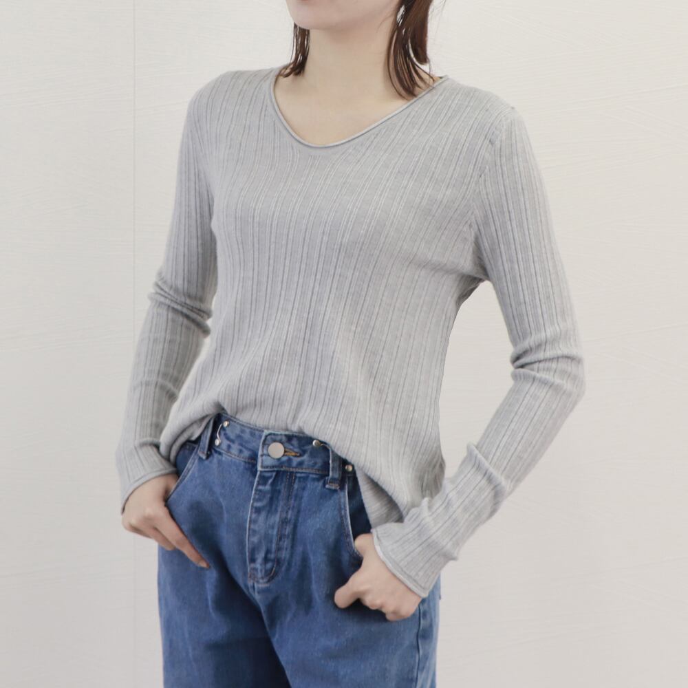 程よい深さのVネックデザイン、デコルテ周りをスッキリ見せ、上品で清楚な印象を与えてくれる