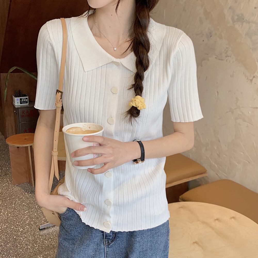 立体的なリブ編みとポロシャツ風のデザインでデイリーに使える、襟付きサマーニットプルオーバー