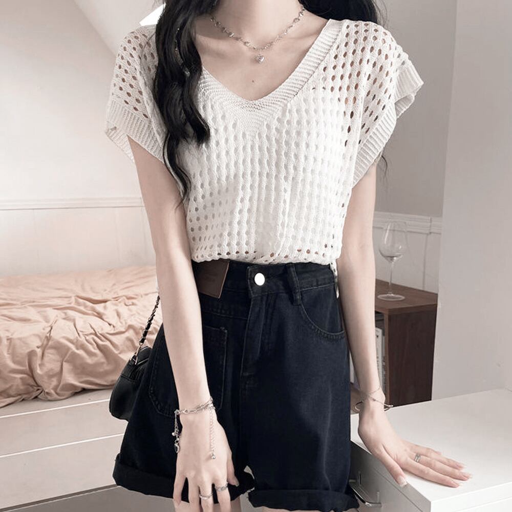 レディース 透かし編みトップス 肌見せ ゆったり メッシュベスト 韓国ファッション シアーニット カジュアル ニットソー