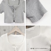 レースアップ プルオーバー 半袖クロップド丈 ニットカットソー ラウンドネック 韓国春夏コンパクトニットソー カジュアル