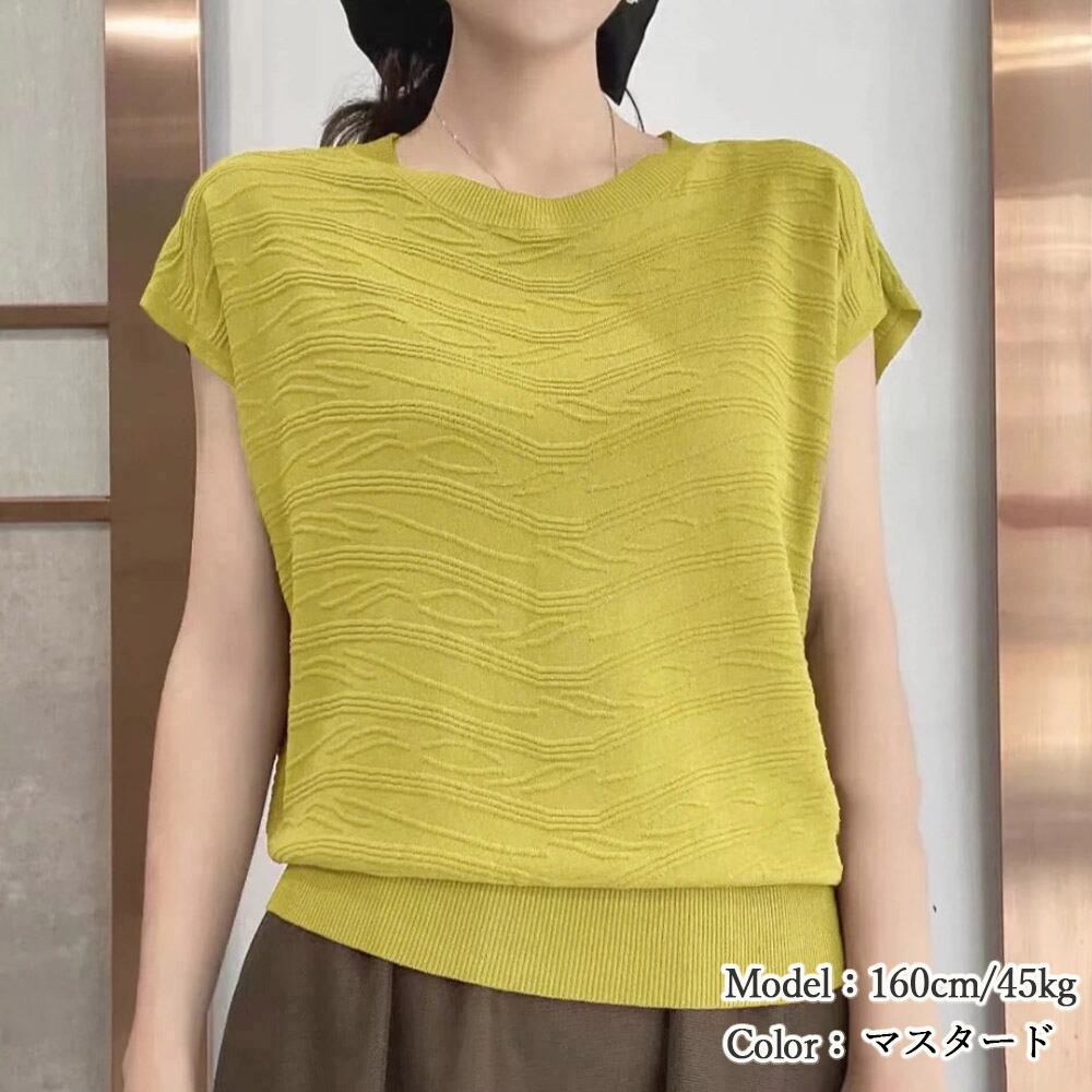 程よく女性らしさを感じさせるクルーネックサマーニット