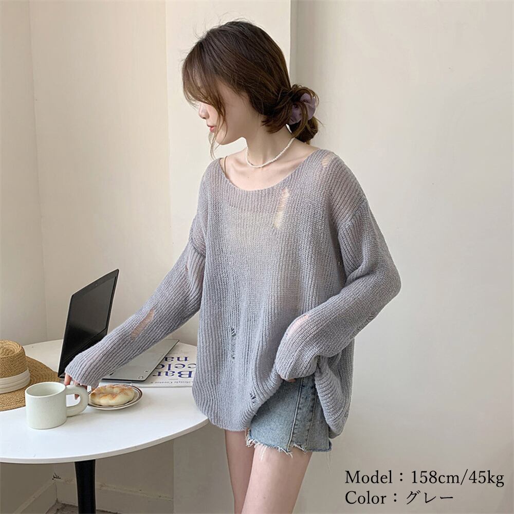 韓国風プルオーバー シアートップス ニット 体型カバー クルーネック 長袖 ニットソー 重ね着 サマーニット カジュアル