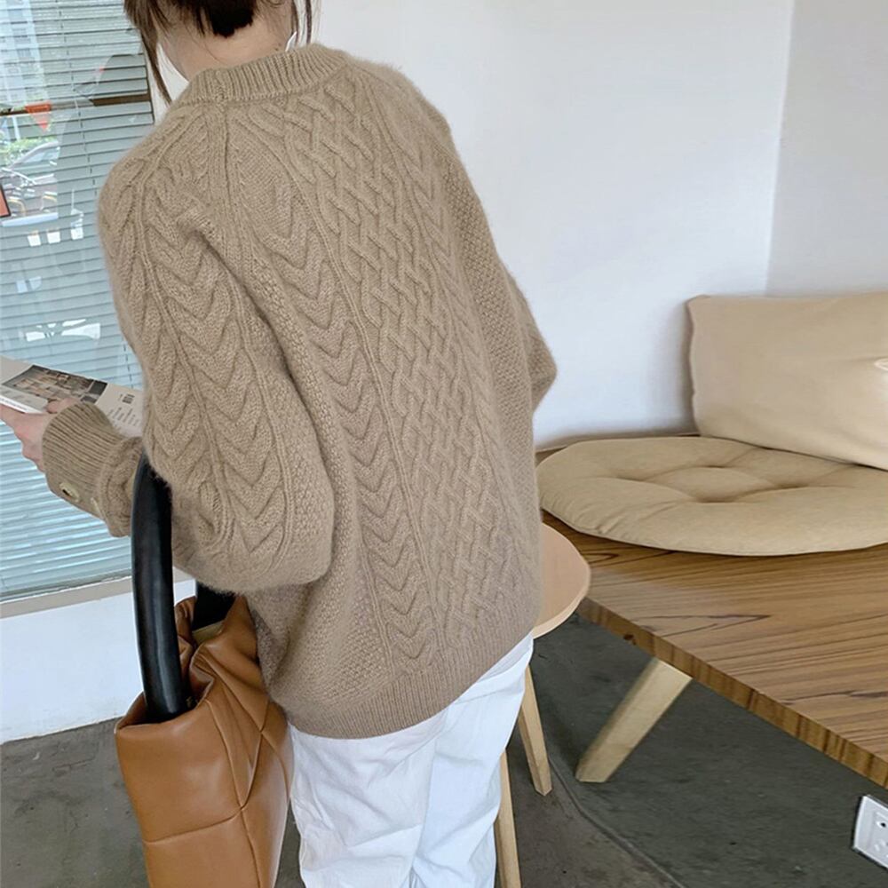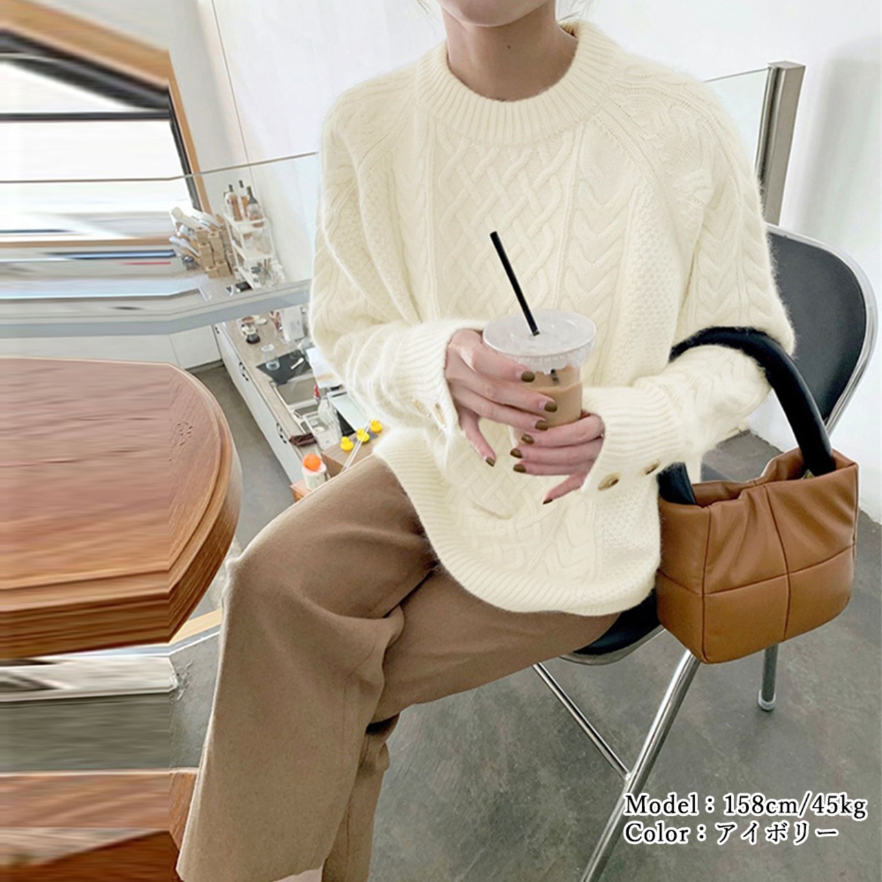 ゆったりしたサイズ感でこなれ感&体型カバー、表情豊かで立体的なケーブル編みニットトップスが新登場