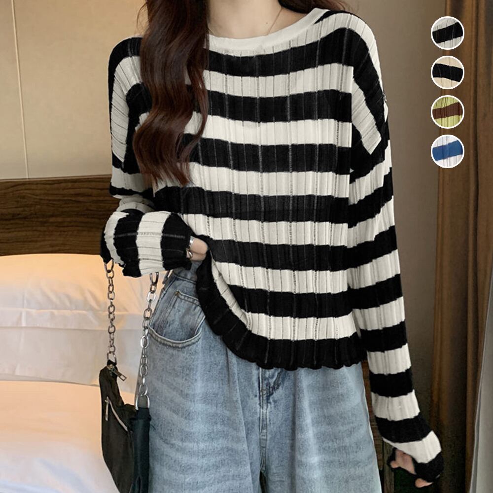 カジュアルな着こなしが魅力的なボーダー柄のニットトップス
