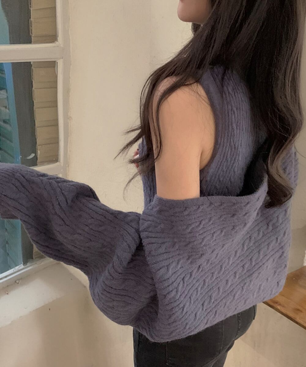 レディース ケーブル編み ニットアンサンブル 韓国 ボレロカーデ プチハイネック ニットタンク おしゃれ2点セット 秋冬
