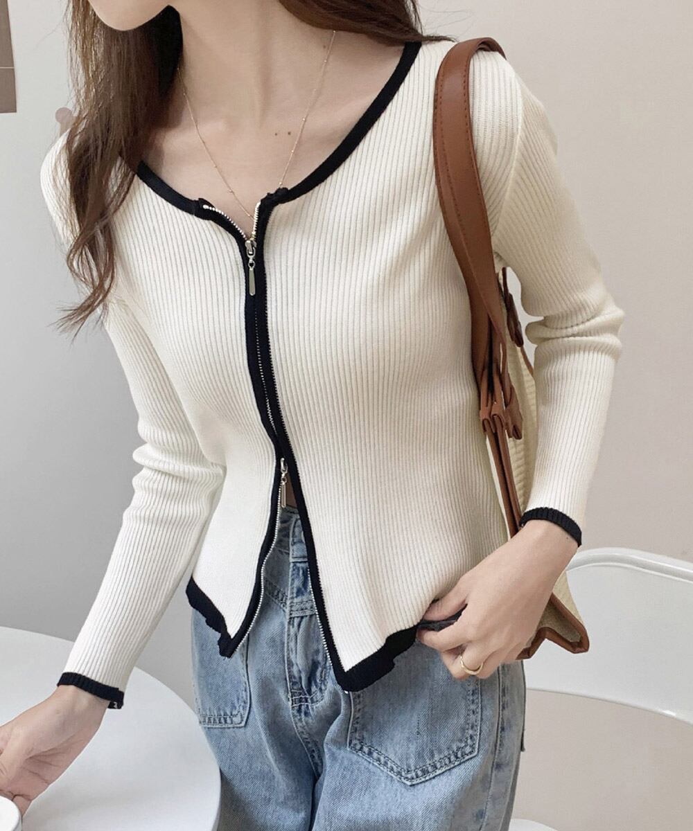 一枚で季節感を楽しめるダブルジップニットカーディガン。