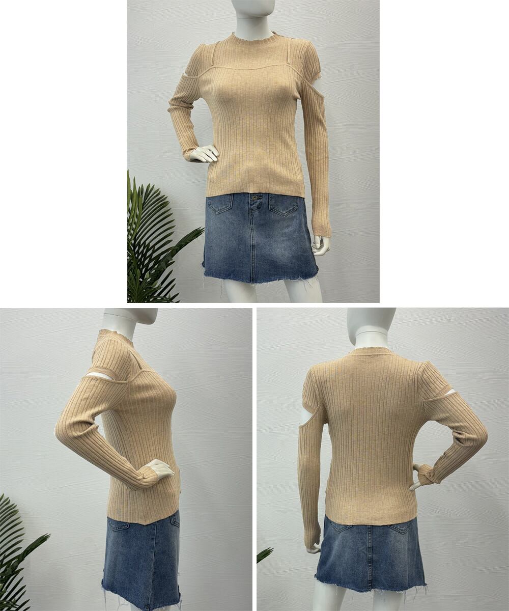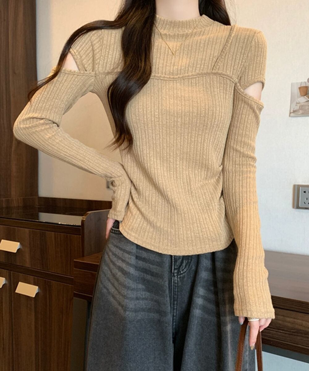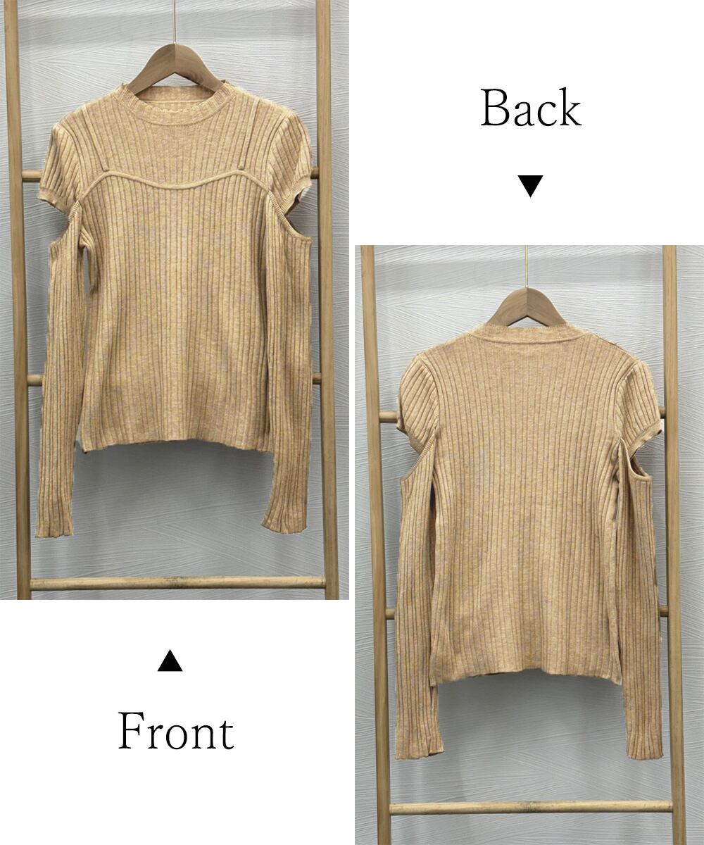 レディース カジュアル リブニットプルオーバー 普段着 長袖 ニットインナー 着やせ オープンカットトップス 秋冬新作