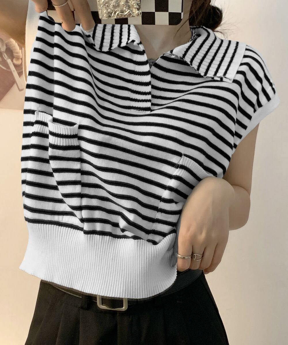ポロニットシャツ夏 半袖韓国風トップス おしゃれニットソー