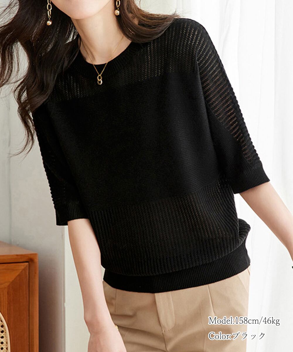1枚取り入れるだけでおしゃれ着こなしが楽しめる透かし編みニットトップス