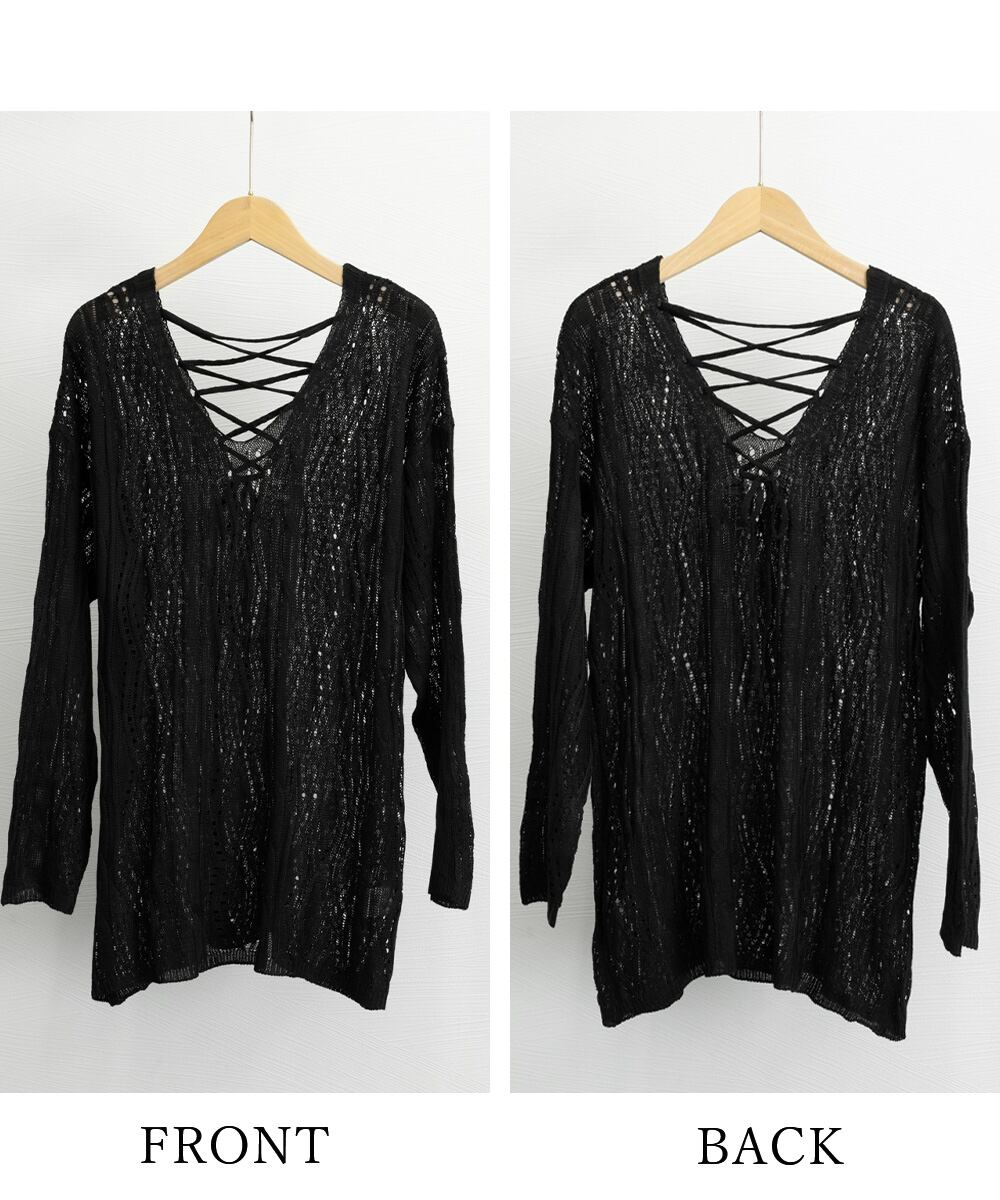 前後2wayサマーニット レディース Vネック メッシュニットプルオーバー セクシー クロシェ編み ゆったり 体型カバー
