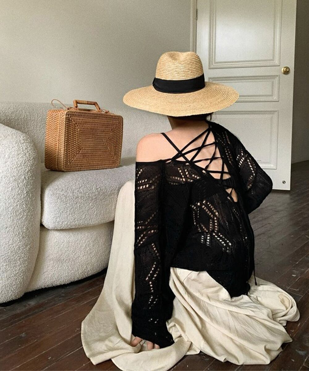 肌見せニットお洒落 透け感ニット着やせ 韓国風 春夏秋服