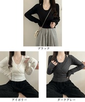 柔らかい素材感とエレガントなカシュクールデザインが特徴のレイヤード風ニットトップスです。