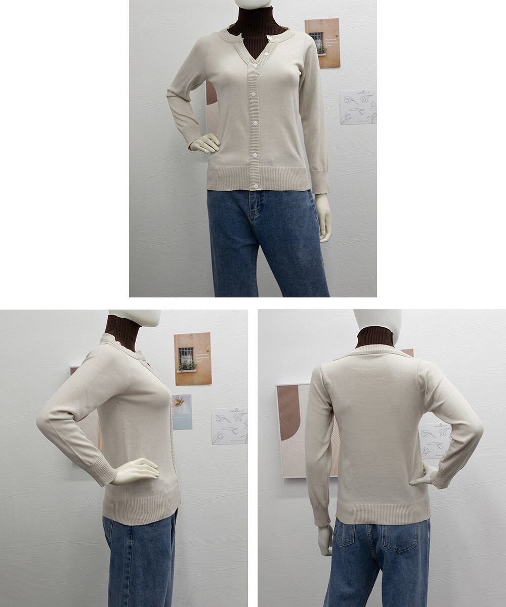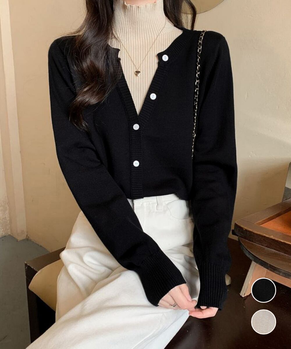 飾りボタン付きで、カーディガン風のレイヤードスタイルも簡単に楽しめます。