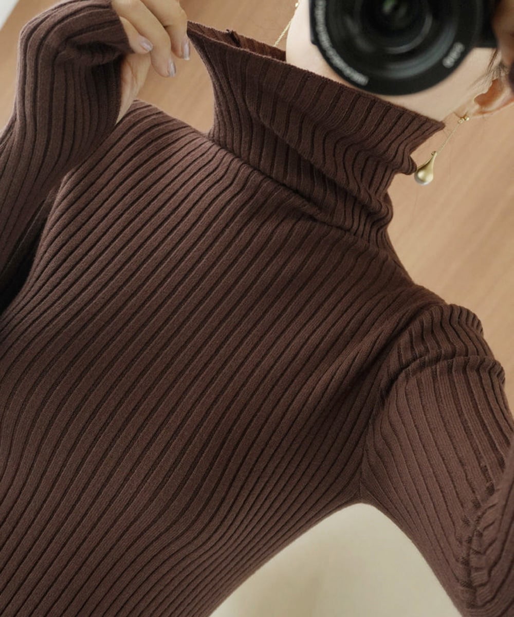 ニットセーター 長袖 リブ編み ニットインナー 伸縮性 タートルネック きれいめ タイトニット 着回し 重ね着 秋冬