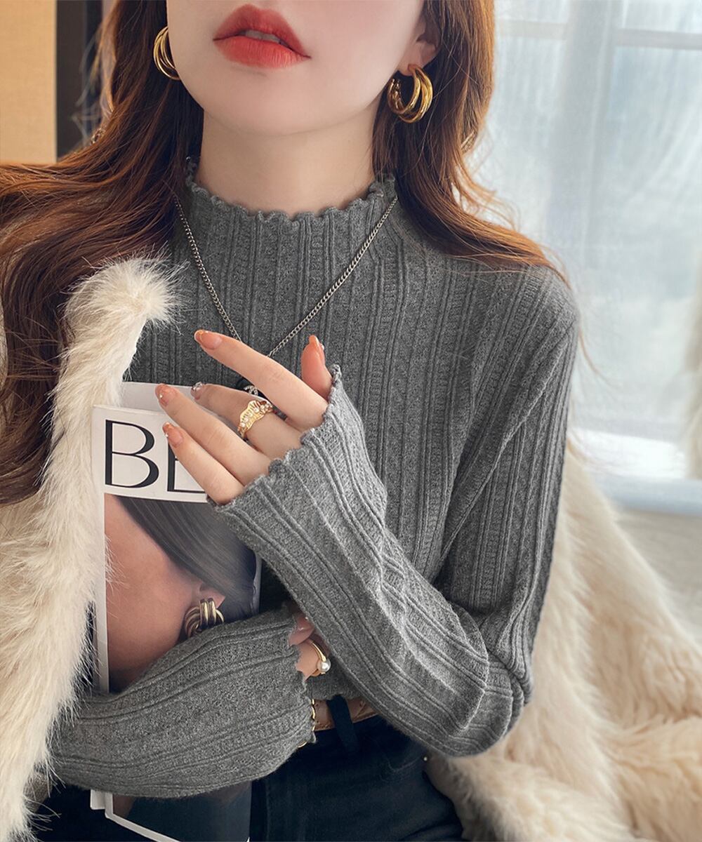 ニットソー 長袖 プチハイネック 韓国風