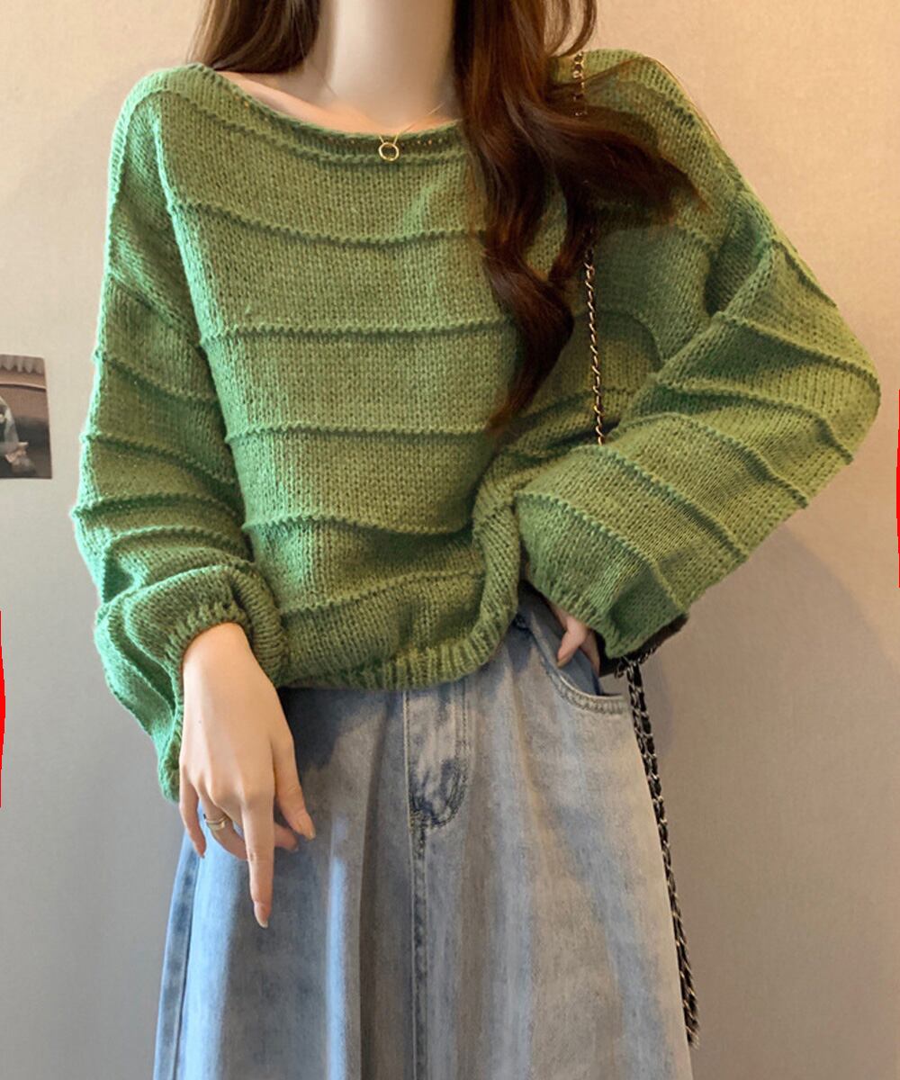 シンプル長袖ニット 無地 ニットウェア トップスカジュアル