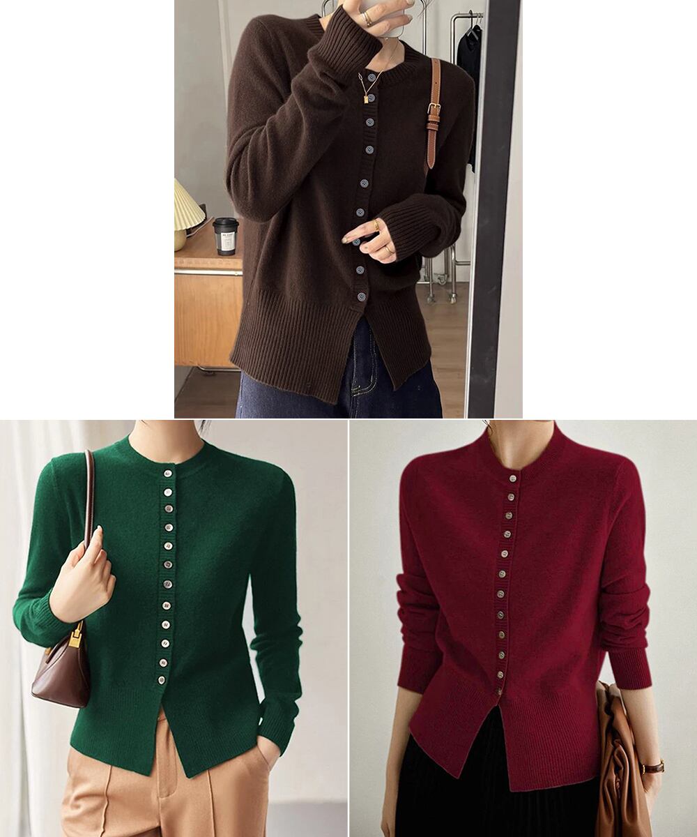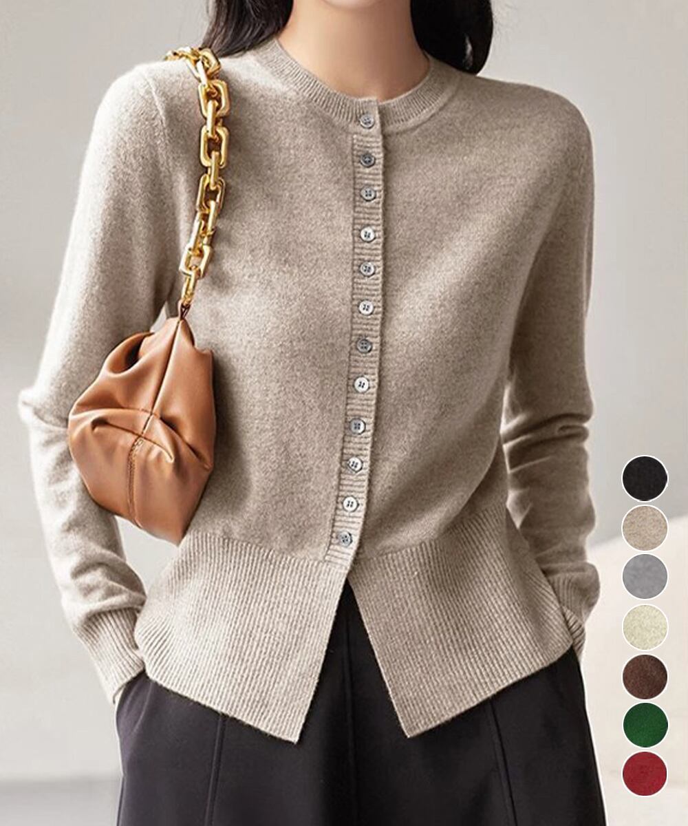 前開きデザインで着脱が簡単なうえ、重ね着スタイルにも最適です。