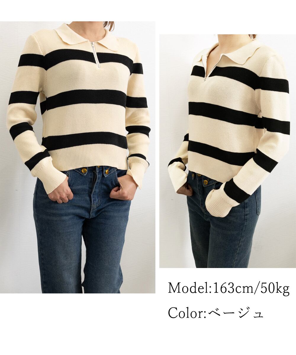 ショート丈 ボーダーニット 配色ニットプルオーバー 春秋冬 リブニット 通勤通学 ニットセーター ニットソー ZIP