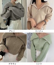 レディース 小顔ビック襟 ニットトップス ゆったり 2wayニットプルオーバー オフィスカジュアル秋冬服 韓国風ニット