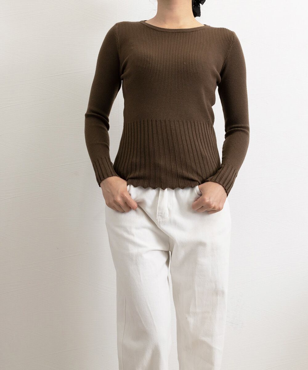 シンプルながらも女性らしさを引き立てるデザインが魅力のリブニットトップス