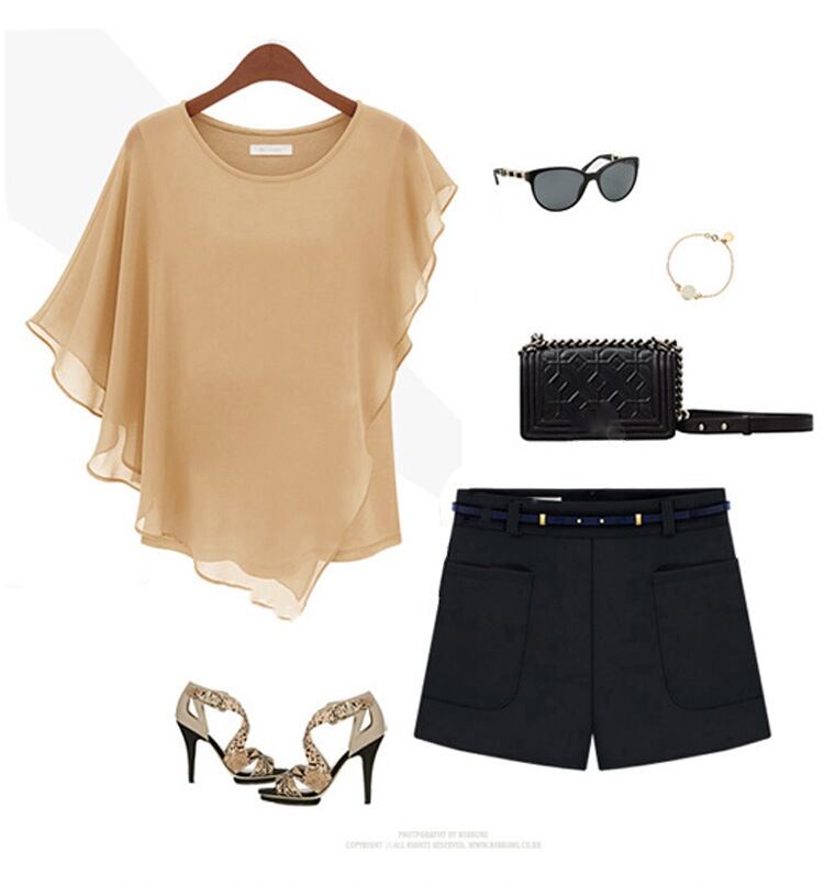 シフォン ブラウス フリル トップス レディース 春夏 可愛い アシンメトリー