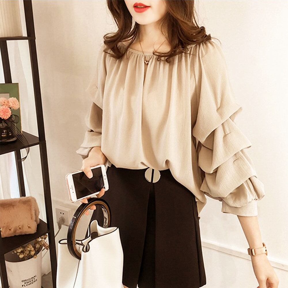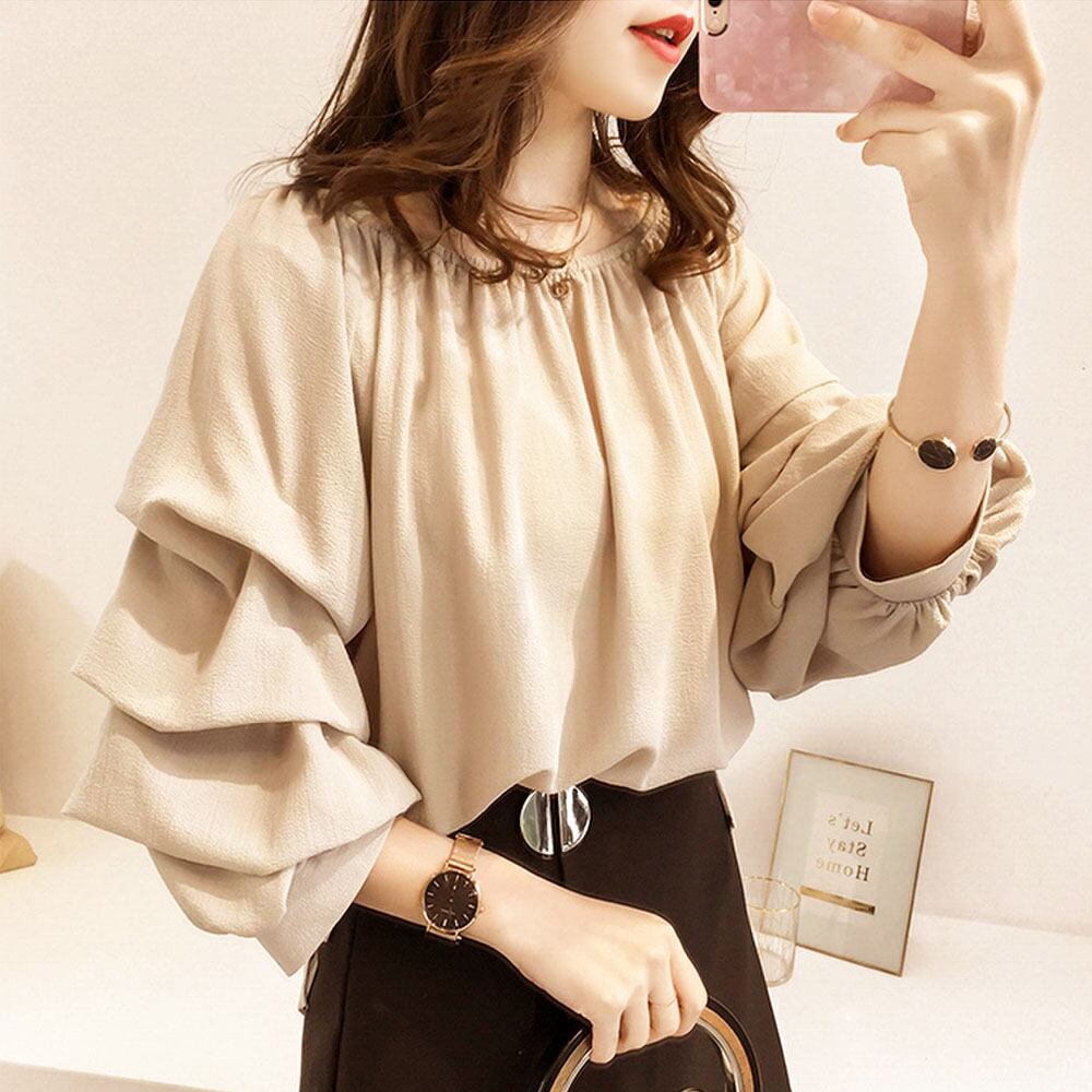 フリルのようなボリュームスリーブが存在感抜群で一気にトレンド感のあるコーデに仕上げてくれる大人可愛いシフォントップス