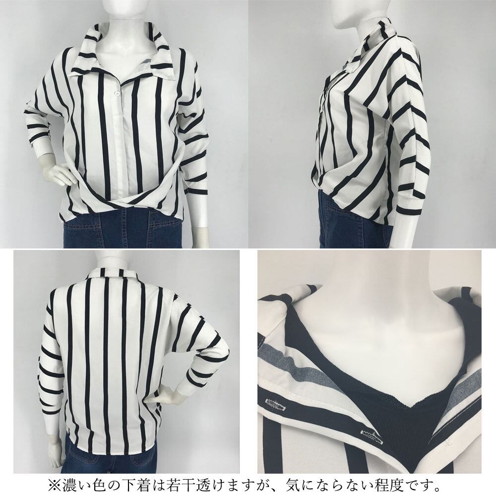 ストライプ スキッパーシャツ レディース おしゃれ 襟付きシャツ ブラウス