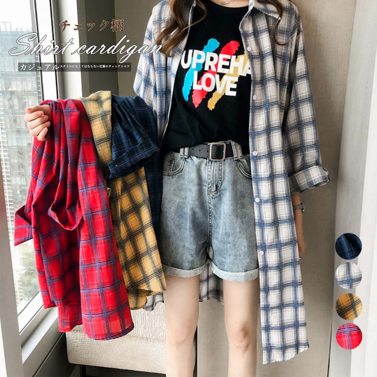 チェック柄 シャツワンピース ロング 長袖 シャツカーディガン 薄手
