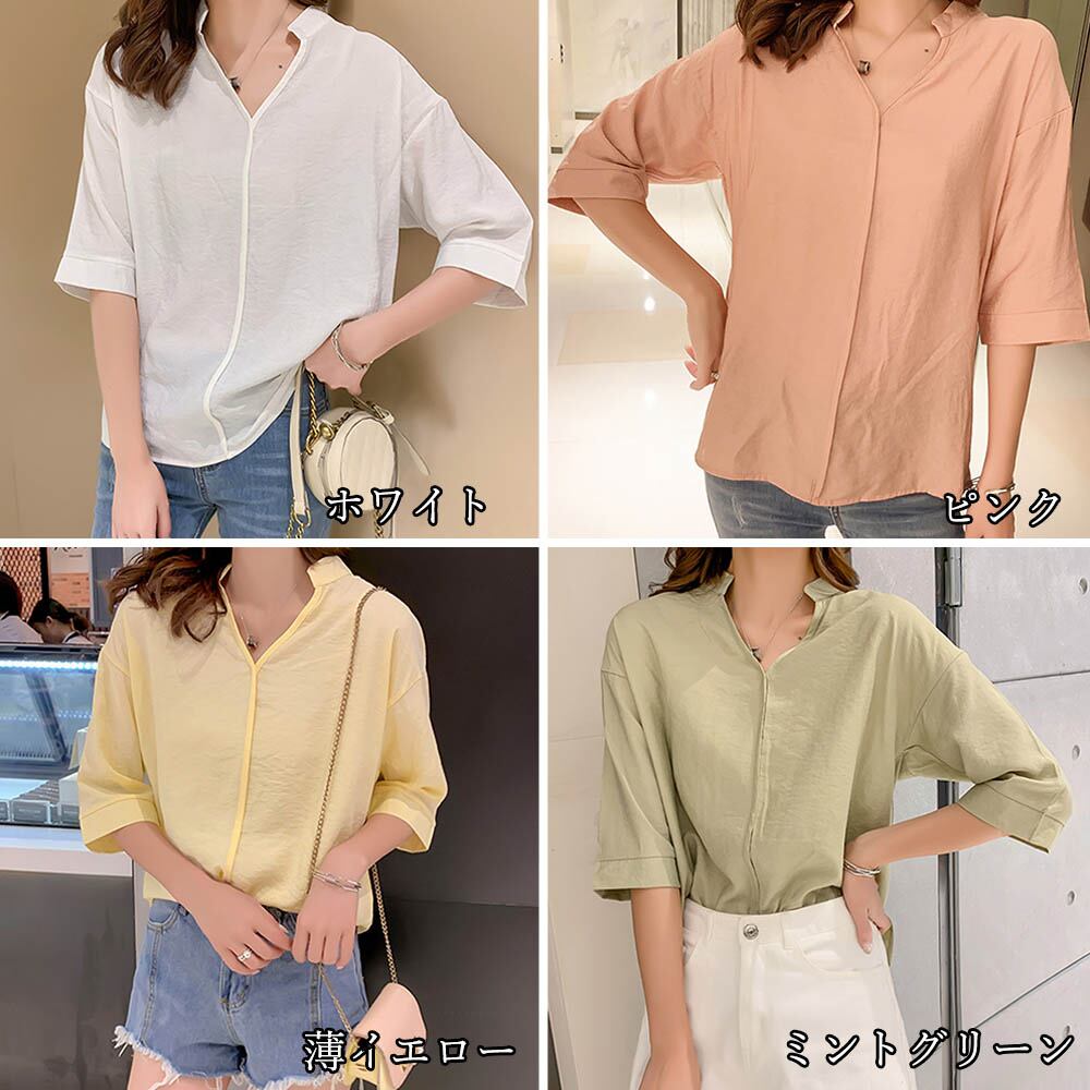 vネック ブラウス スキッパー シャツ レディース ブラウス 五分袖 トップス