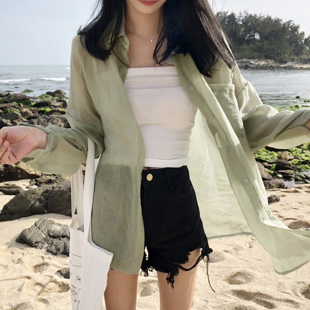 カーディガン 春夏 レディース シフォンブラウス 長袖 ロング丈トップス