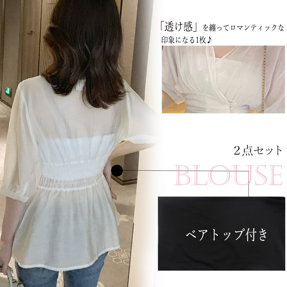 ペプラム ブラウス レディース 2点セット ベアトップ付き トップス