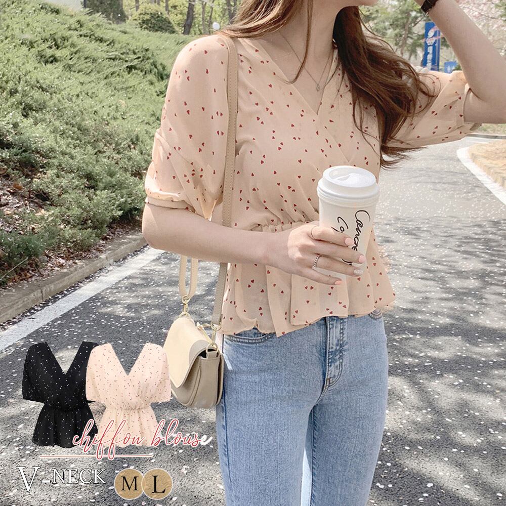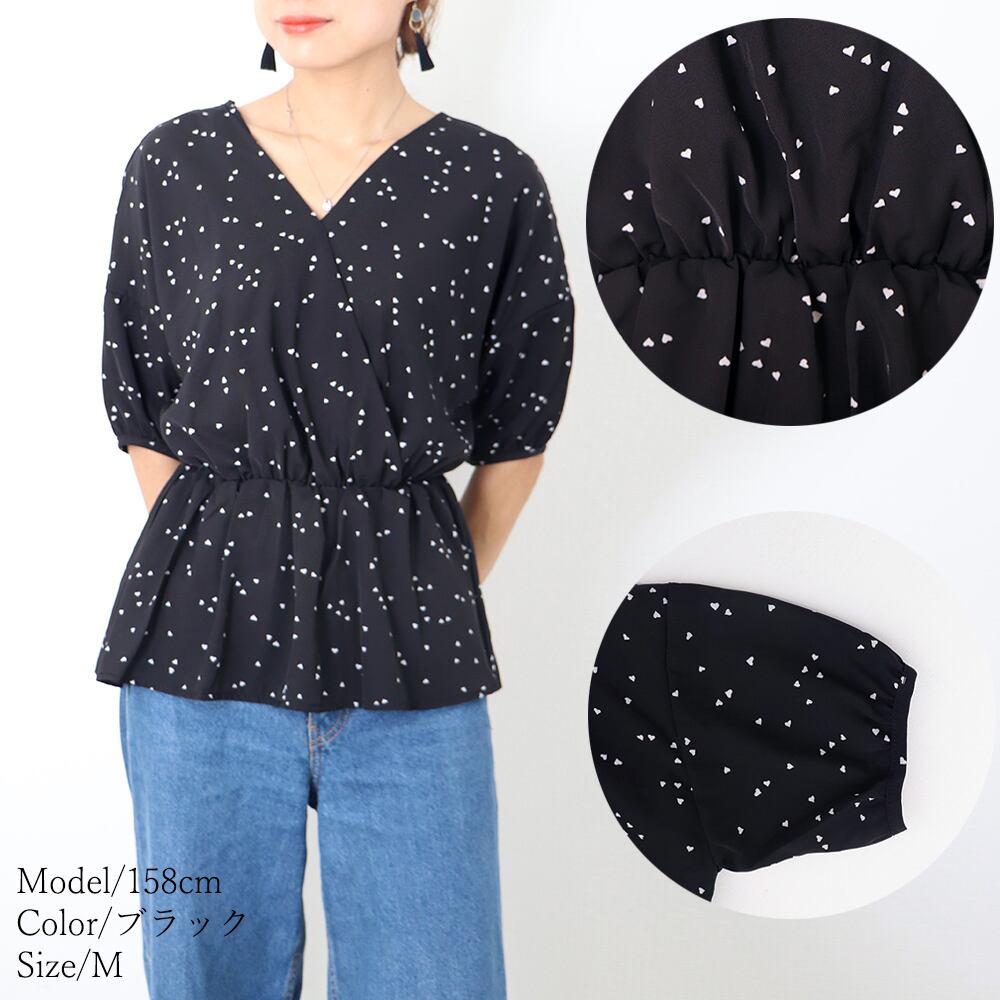 カシュクール ブラウス レディース ハート柄 シャツ ペプラム 着やせ