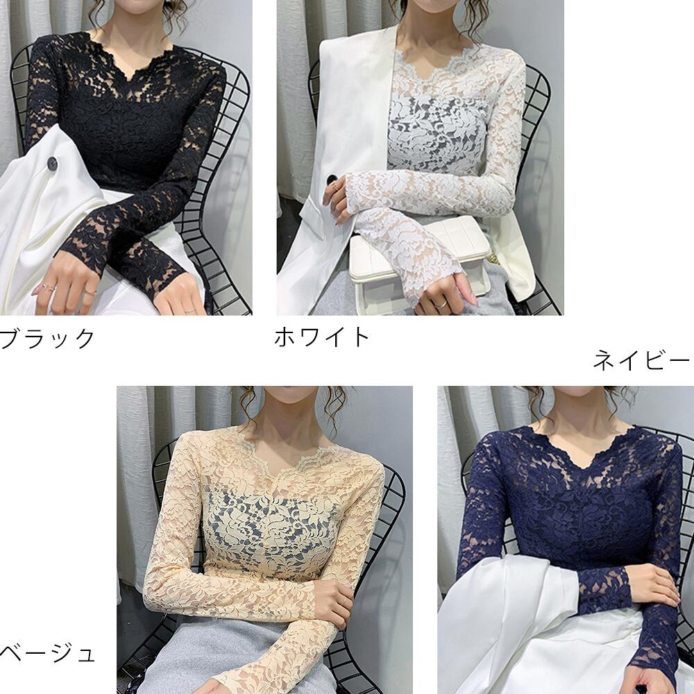 花柄 総レース ブラウス レディース Vネック 長袖 カットソー 着やせ