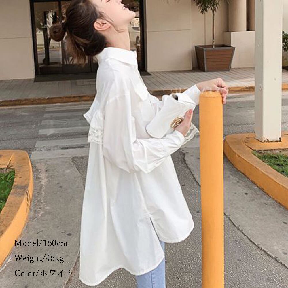 レース ブラウス レディース フリル シャツ ゆったり 無地 トップス